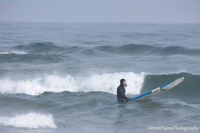 ▼但零下34的低溫也無法阻止Daniel Schetter與Allen Finau衝浪的熱情,於是他們帶上衝浪的裝備,開始這次刺激的衝浪。