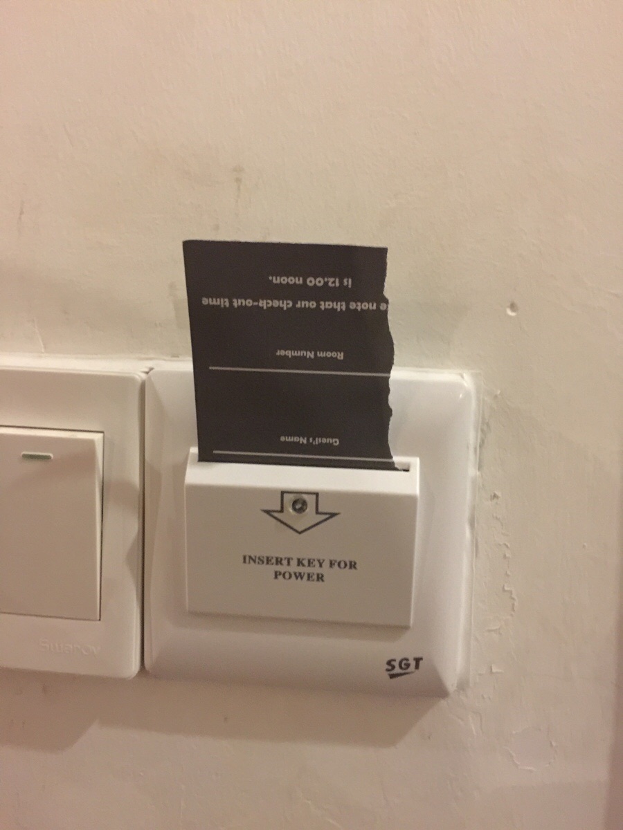 ▼14.其實有些飯店的電源可以用別的紙張去插,不一定要用鑰匙卡。