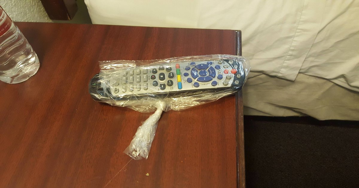 ▼11.飯店人員在清掃時容易漏掉遙控器,久而久之導致它又髒又黏。從櫃子裡拿個塑膠袋來套上,幫你隔絕髒東西。