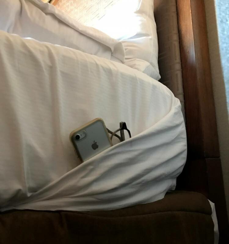 ▼13.床邊沒有床頭櫃的話也沒關係,只要把床單一角折起來就可以拿來塞各種小物。
