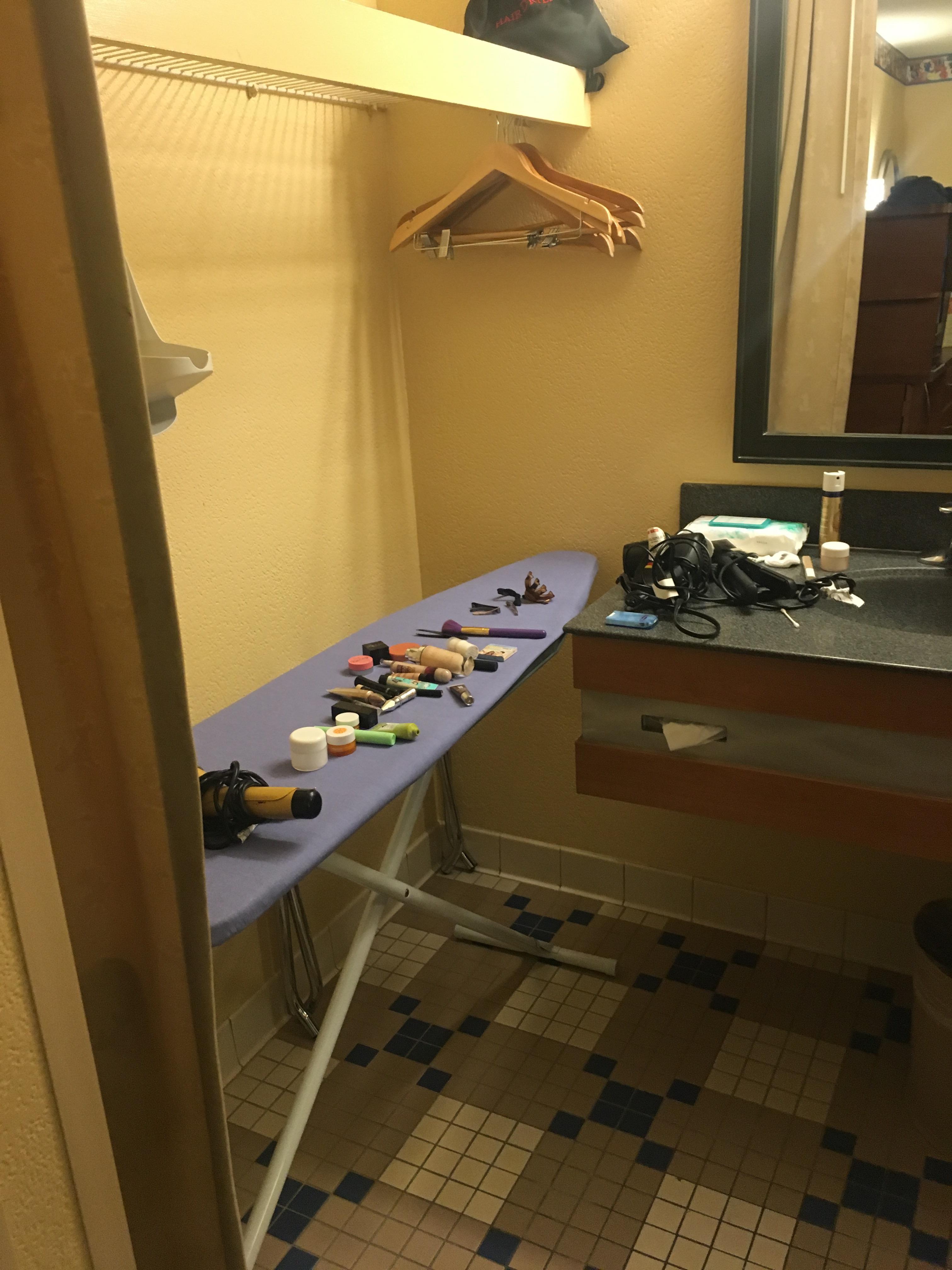 ▼10.化妝品、電棒燙怕碰到水,或者洗手台空間不夠放瓶瓶罐罐的時候,拿衣櫃裡的熨衣板來用。