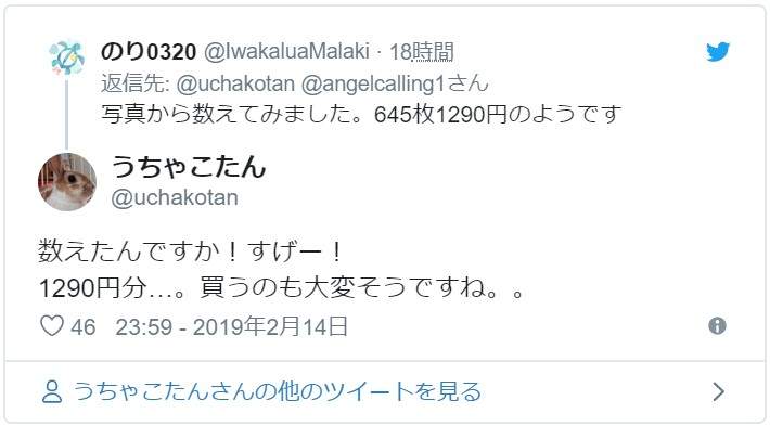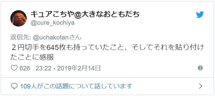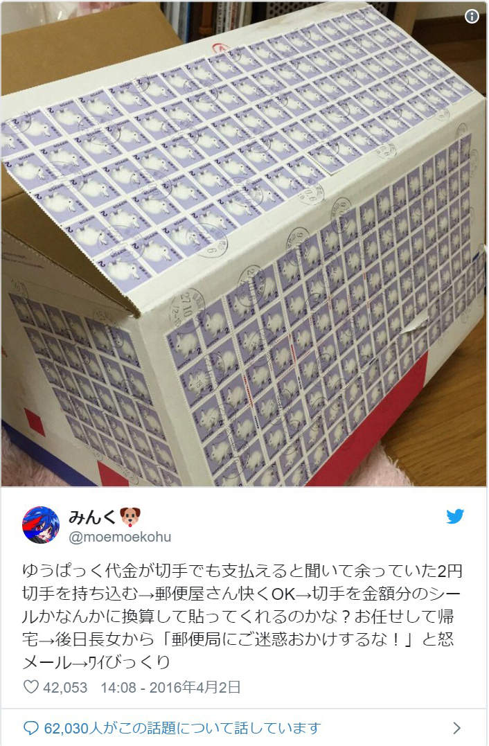 ▼「我算過了,一共有645張郵票,總數1290日圓的郵資!」