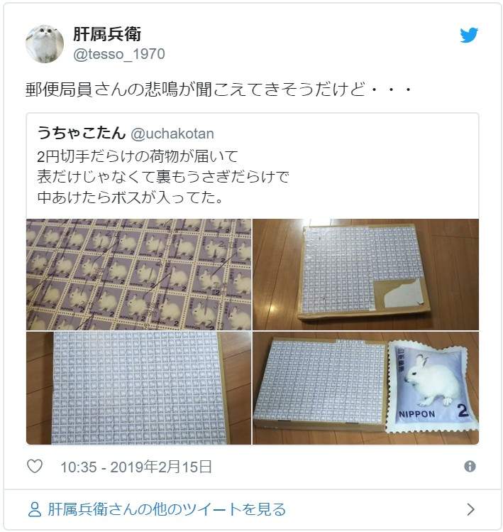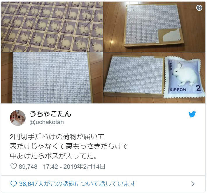 2019年02月18日到底是誰會這樣貼郵票的啦?日本一名網友去拿包裹的時候真的超傻眼,645張2日圓貼好貼滿的壯觀景象讓他都不好意思直視店員!更好笑的是,包裹一開啟,裡面還蹦出「老大」,讓網友們都直呼:「200%的心意!」