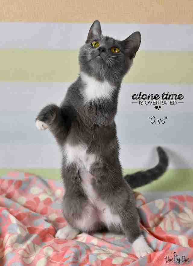 ▼Olive 在僅有 2 個月大的時候就被關進收容所,而且因為遲遲沒有想領養的人出現,還差點落入被安樂的命運。幸好一名名為 Holly Dixon 的女子及時介入,才讓牠能夠繼續活在世界上。Holly 是一名醫藥編輯,同時也是「費城緊急動物」臉書粉絲專頁的管理人之一,收容所會傳給他們將被安樂的動物名單,讓他們貼文幫忙找尋合適的領養人或寄養家庭。這就是 Holly 與這隻只有三條腿的小貓的第一次相遇。