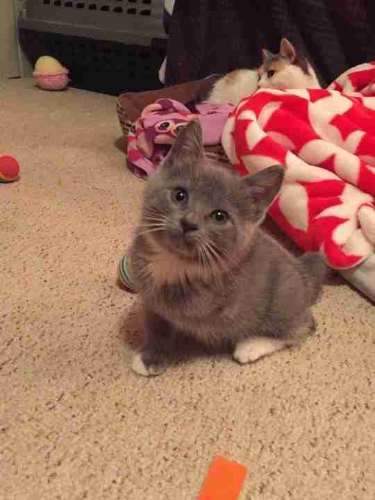 ▼2016年10月,一個可愛的灰色小貓來到了這個世界上,但跟其他貓不一樣的是,牠天生就只有三條腿。
