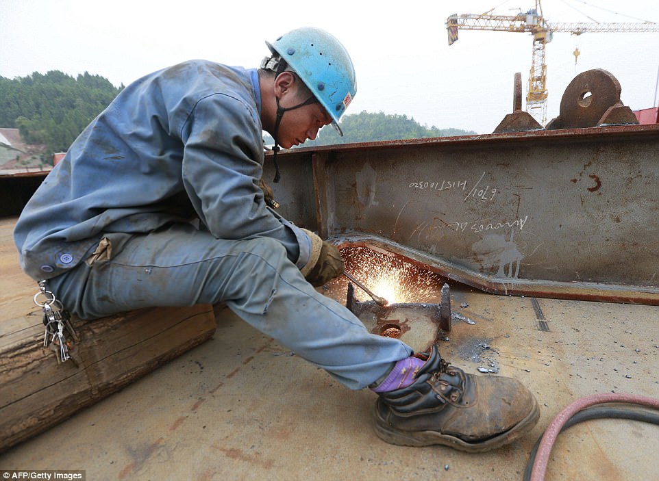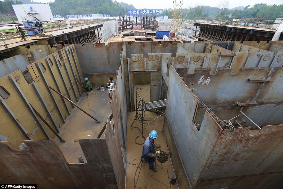 ▼2017年時,工人們正在忙碌建設仿製版鐵達尼號。