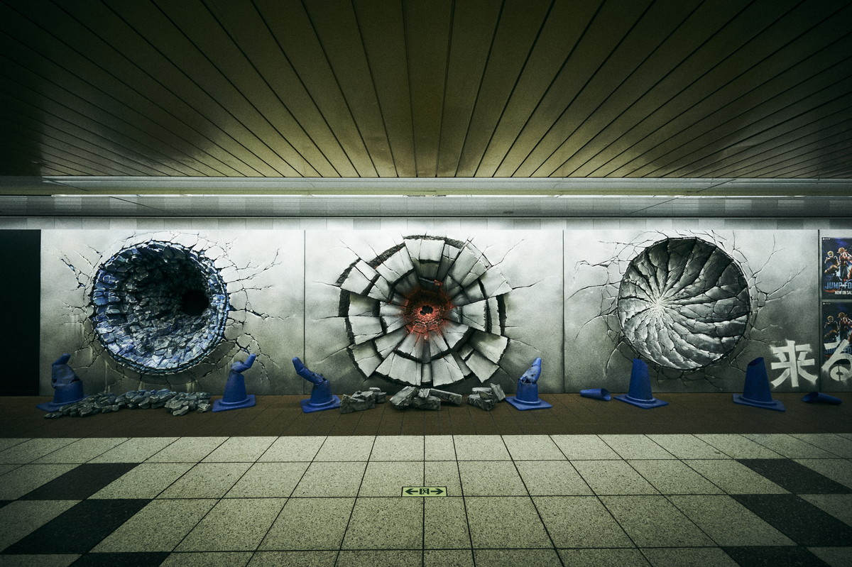 神秘人在新宿車站「打出三個大洞」 放大一看全網驚呼:是悟空、路夫和鳴人