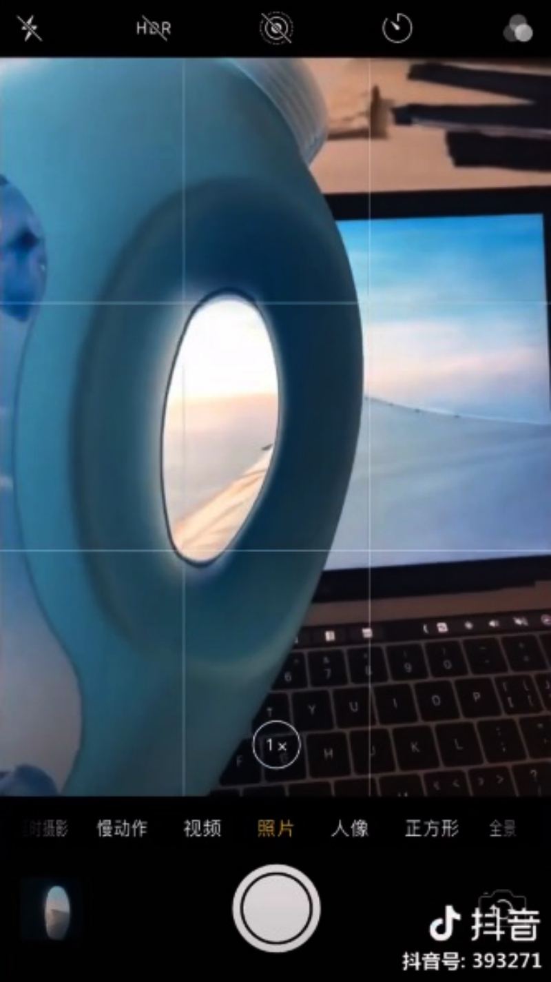 ▼飛機窗是用洗衣精瓶偽造的,加上一張漂亮的照片,喬好角度就能拍出網美照了。