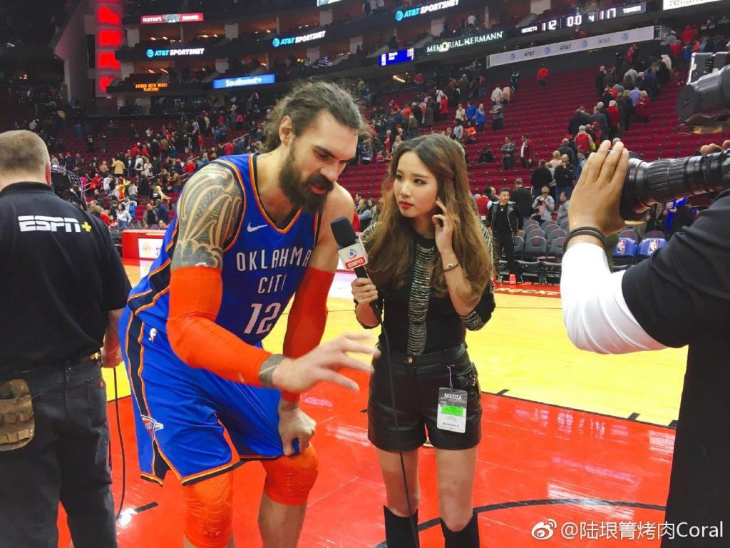 太貼心的NBA暖男!擁有NBA「水行俠」之稱的雷霆隊中鋒史蒂夫亞當斯(Steven Adams),在幫助球隊逆轉勝後,遇到一個小隻馬女記者採訪,他眼看對方只能不斷抬頭,下一秒直接超貼心地彎腰接受採訪,整個畫面看起來超暖心!