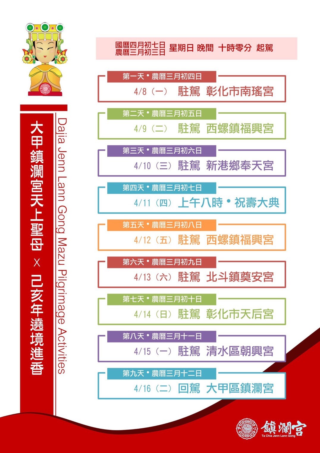 大甲媽的行走路線會提前讓大家知道,白沙屯媽必須全聽從媽祖旨意,無法確定。