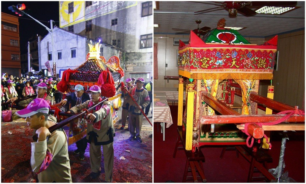 大甲媽的神轎會有8人負責扛轎,白沙屯媽則分別有4人與8人扛轎兩種方式。