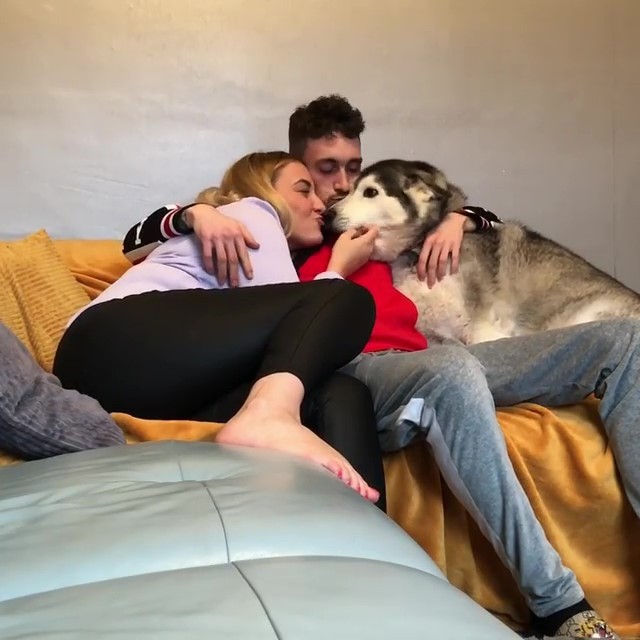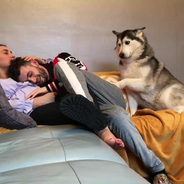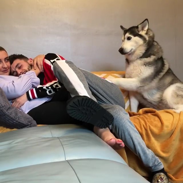 2019年02月23日哈士奇雖然有著冷酷帥氣的外表,但有著天真呆萌的內心,可愛的反差萌被別人稱作「月月」。國外有一對夫妻養了兩隻哈士奇,其中一隻特別愛跟爸爸撒嬌,整天都黏著爸爸,還不准媽媽來爭寵!當他看到兩人恩愛擁抱時,哈士奇出手阻止,似乎在表示:「我也要抱抱!」
