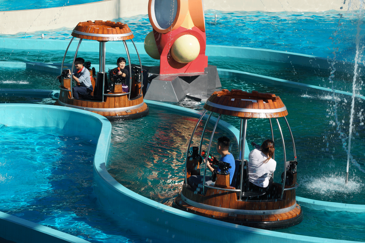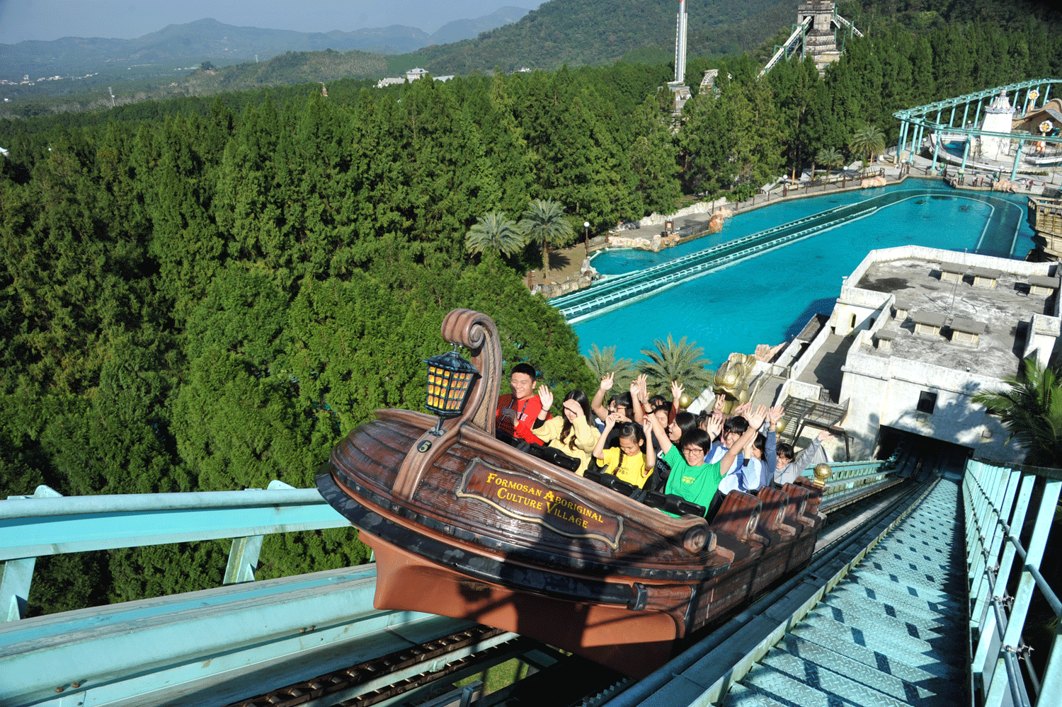 ▼除了美美的高第城堡之外,九族終於新增刺激的水上設施啦!西班牙海岸園區內新增五大遊樂設施,分別是大漩窩、水戰船、飛行船跟無敵艦隊。可以在船上和別人打水戰,感覺超涼快啊!