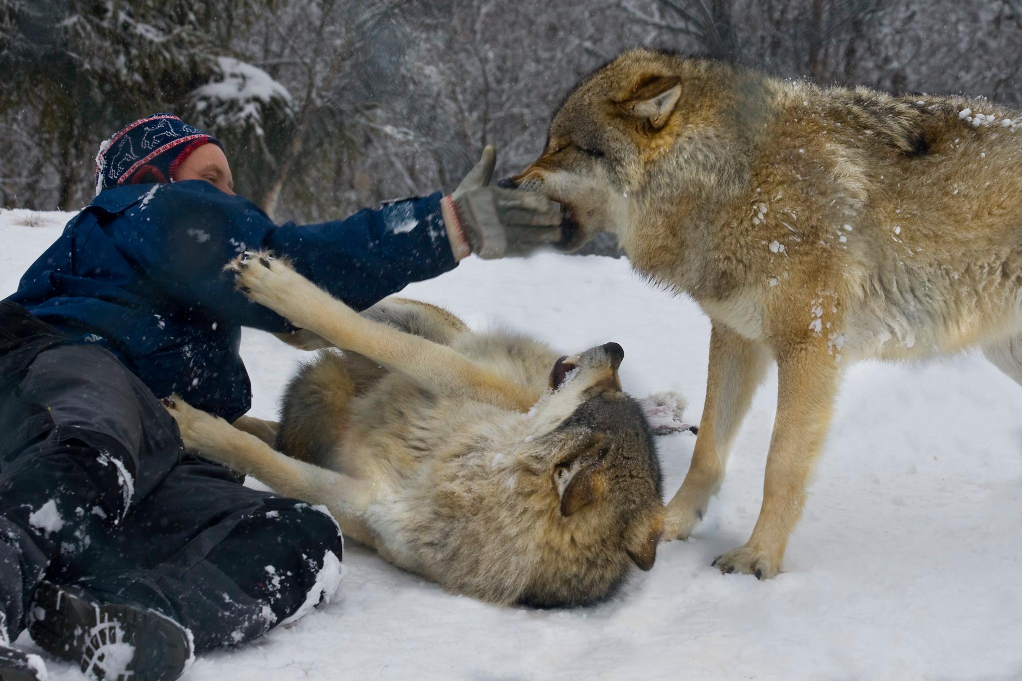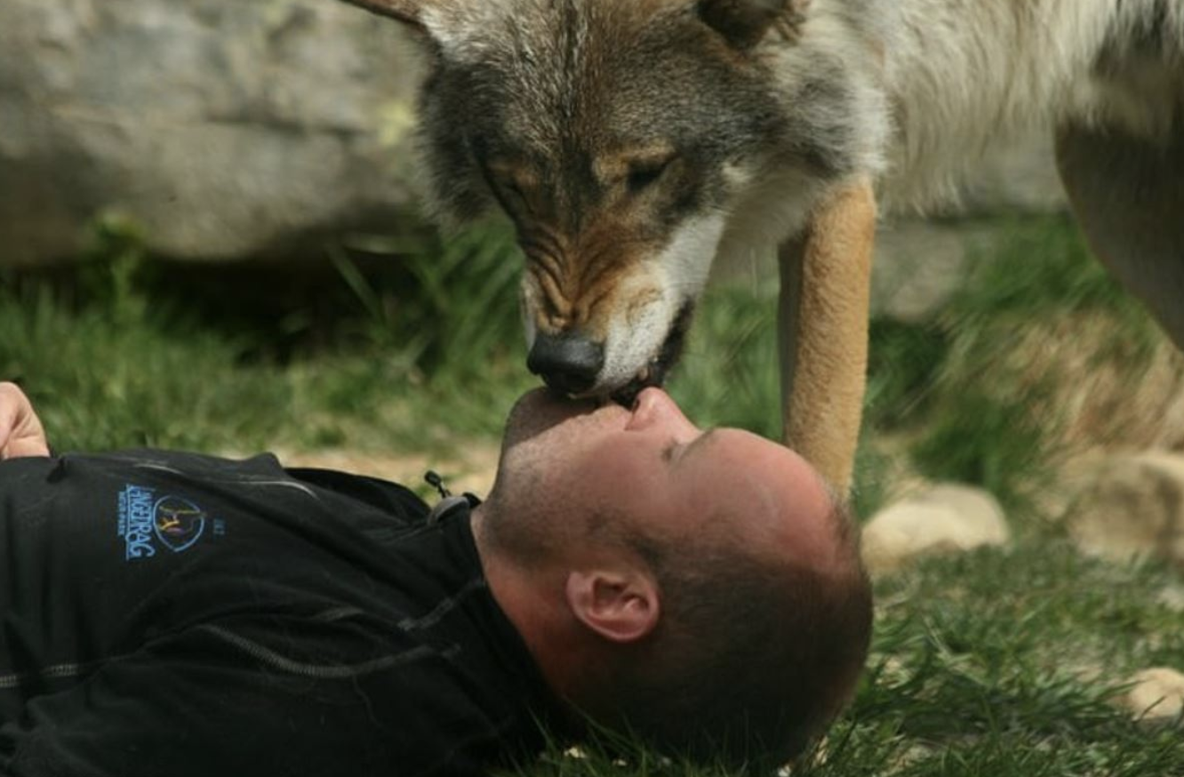 ▼一名43歲挪威男子法蘭克(Frank Andre Soma),是一名動物專家,目前在挪威Langedrad自然生態公園工作近20年,除了飼育員的工作之外,另外一個特別身份就是狼群的首領。法蘭克在此工作之前,曾在另一處的熊公園作為「狼專家」工作2年,現在在園區負責照顧熊、山貓、北極狐和灰狼。