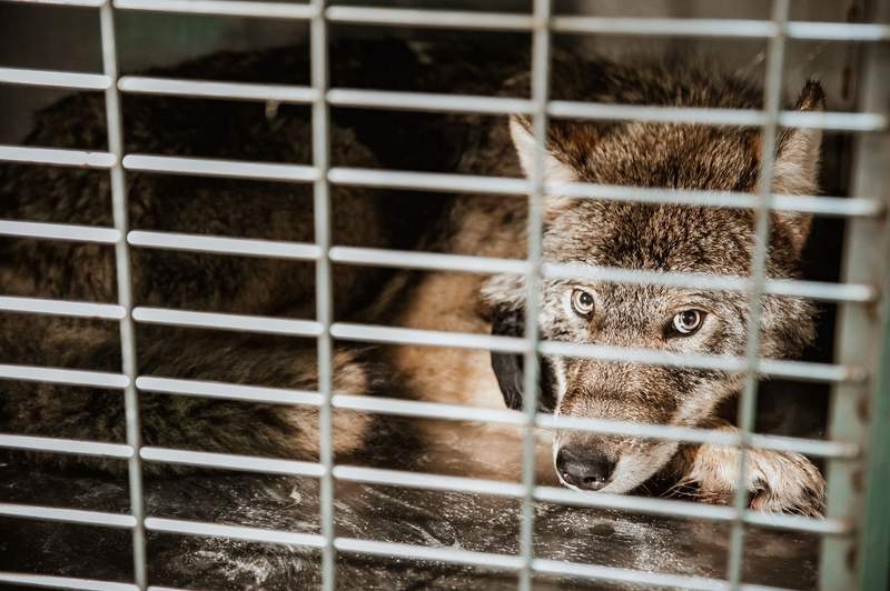 ▼這隻小狼是一隻一歲左右的公狼,安全起見,獸醫在進行救治後將在安排在了籠子裡。