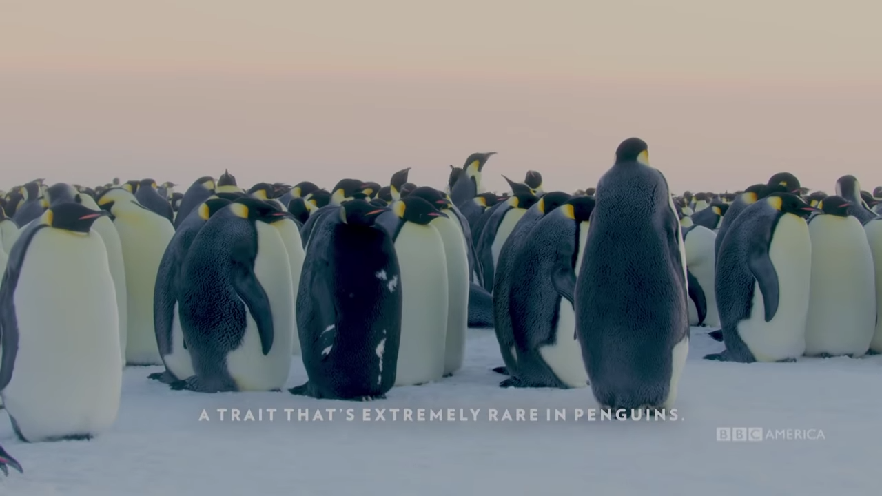 ▼「黑化的基因幾乎不會出現在企鵝身上。」
