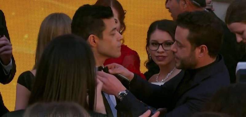 ▼其實從頒獎典禮到上台之前,明明已經有很多人幫他調整領結,其中包括他女友露西(Lucy Boynton)…