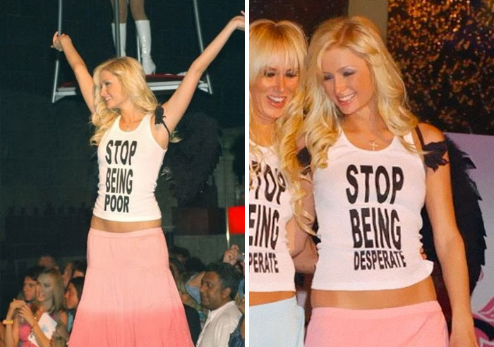 ▼24.傳言:芭黎絲希爾頓的T恤:「別再窮下去了」。