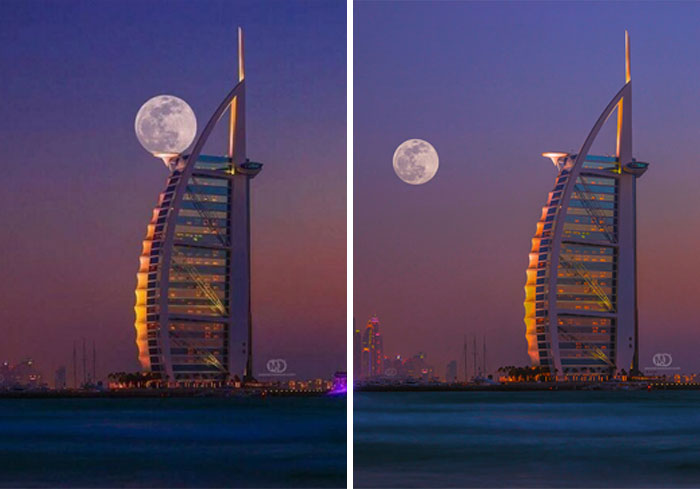 ▼14.傳言:月亮恰好出現在摩天大樓的平台上。