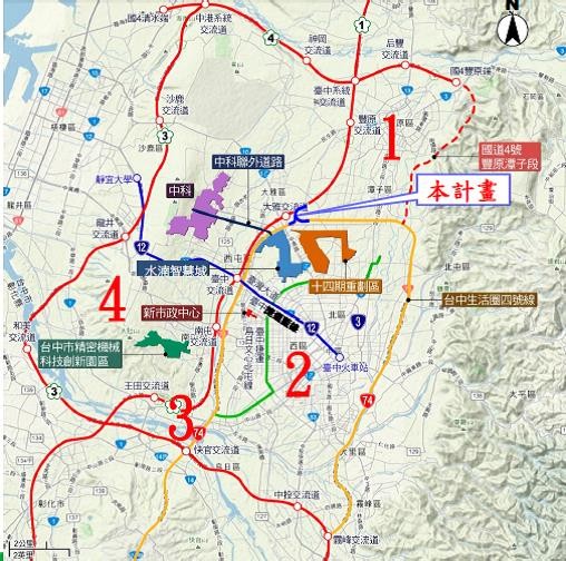 ▼現行連接台74線的「國道4號豐原潭子段工程」也正在施工,全面完工後,台中將成4個環狀路網,使大台中都會地區變為「1小時生活圈」,對未來發展大有助益。