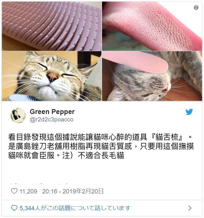 ▼網友在推特上大讚這「貓舌梳」,看看這貓咪滿意的樣子,好像真的很舒服啊!