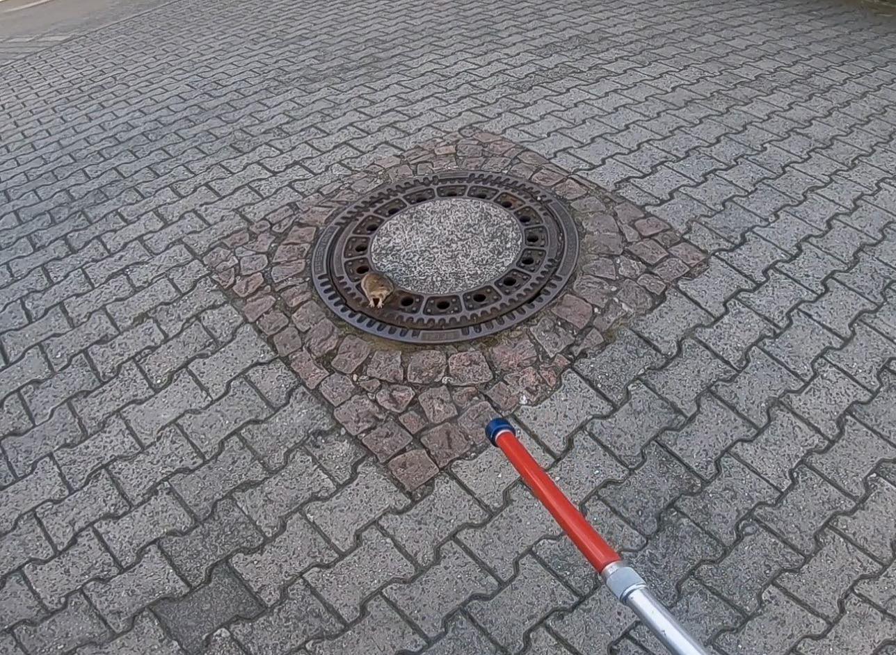 小老鼠,上油台,偷油喝,下不來…這首耳熟能詳的童謠告訴大家吃太胖會發生什麼事(?);而德國這隻小老鼠吃太胖也導致牠面臨「下不了台」的窘境,只是牠是卡在水溝蓋裡!