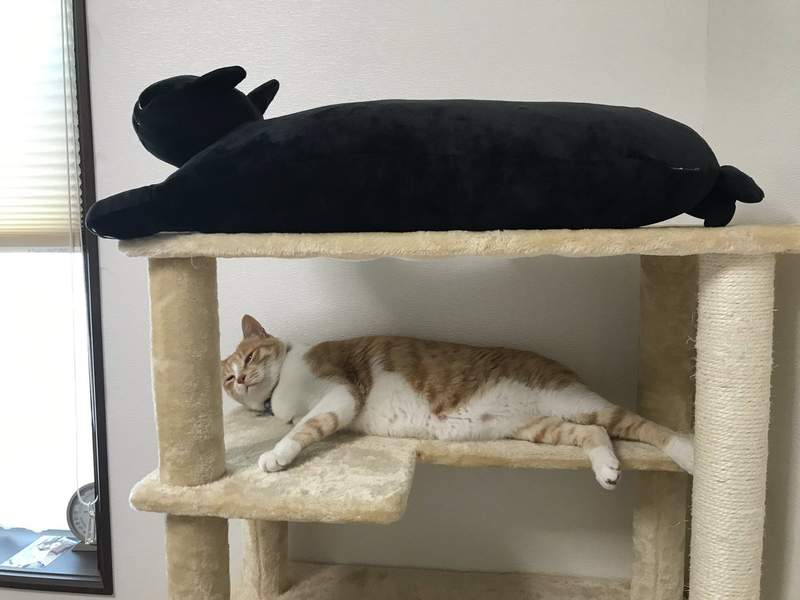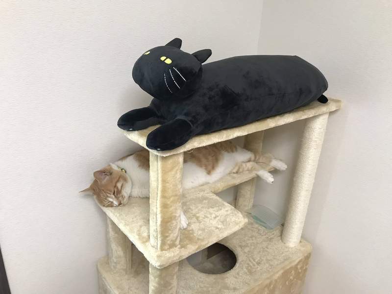 ▼帶回家後跟自家貓主子一起在貓架上也不違和啊~~