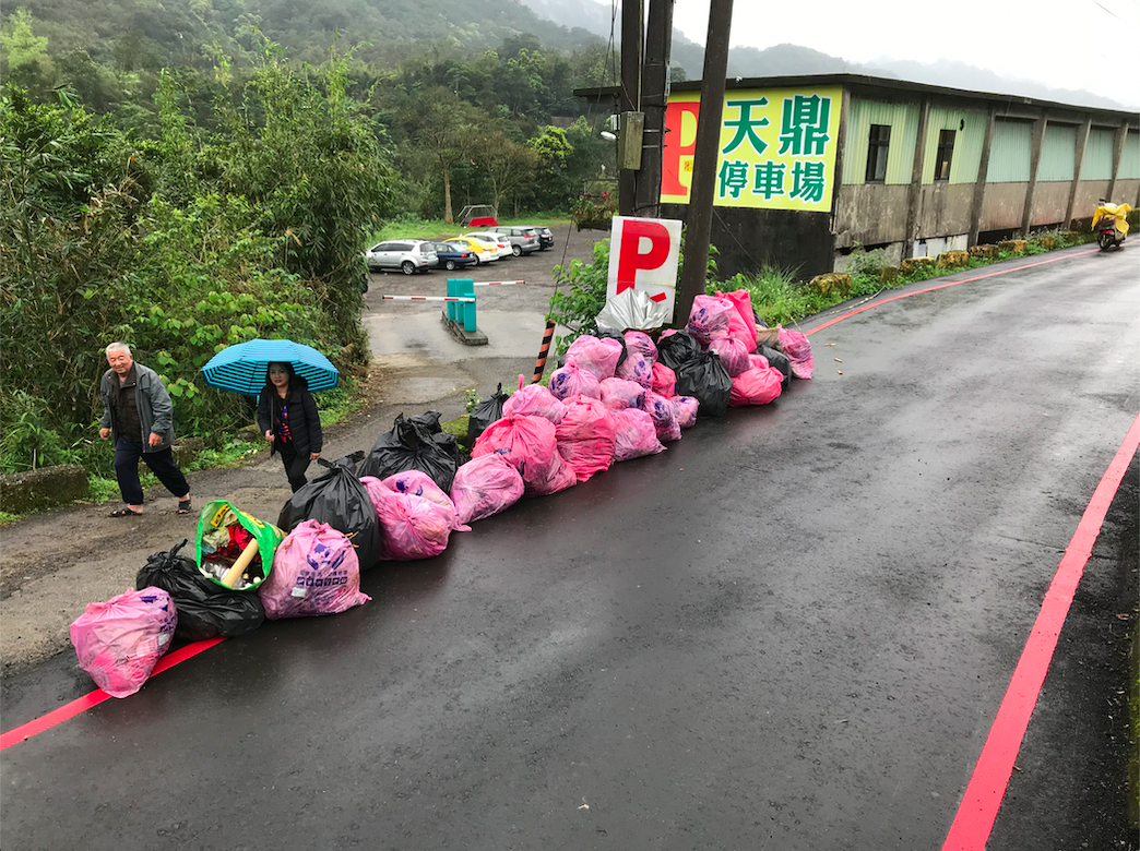 ▼這場活動從十分老街出發,大家一路沿著鐵軌步行到平溪的望古車站,再返回十分。過程中撿起來的垃圾量非常驚人,當全部裝進新北市專用垃圾袋後,算一算居然一共裝了40袋!