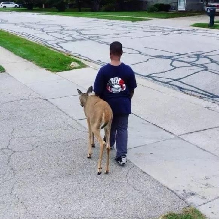 ▼每個早上,這孩子都會幫助這隻視障的鹿找尋食物。