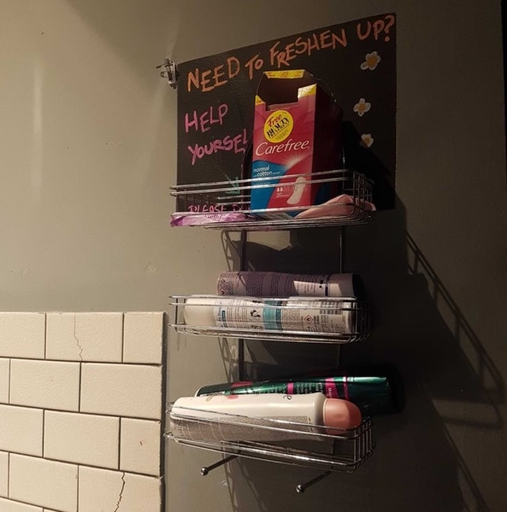▼女友在某個餐廳的洗手間拍到的,裡面有供應各種緊急時刻需要的物品,當中包括了衛生棉。