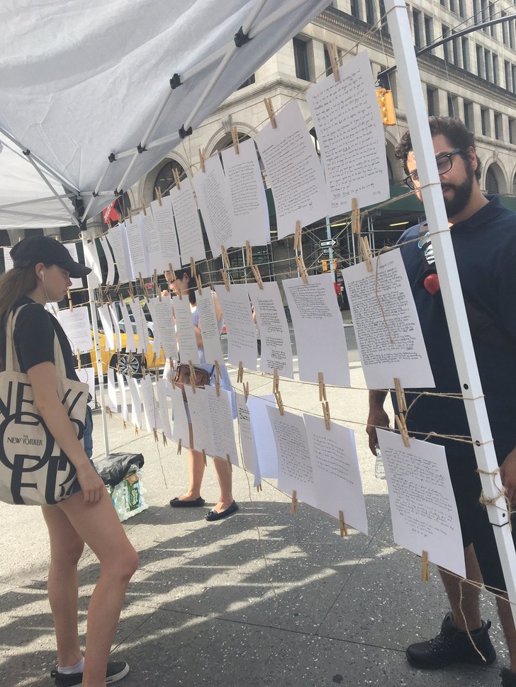 ▼有人在紐約大學搭了一個帳篷,給大家白紙讓大家寫下想要分享的故事。