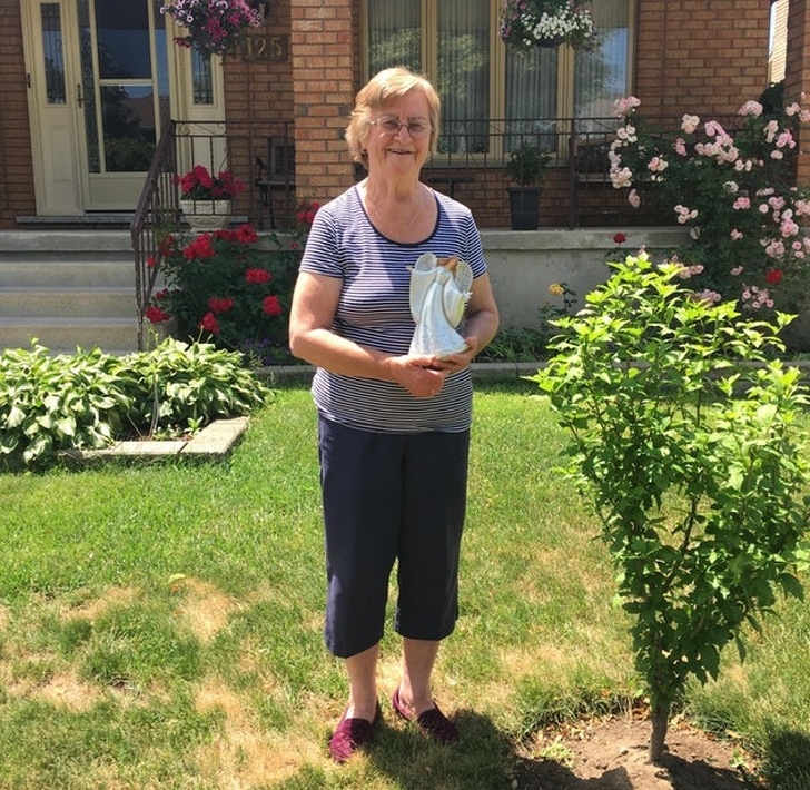 ▼「陌生人在我阿嬤院子留了一個天使的雕像,阿嬤感到非常開心。」