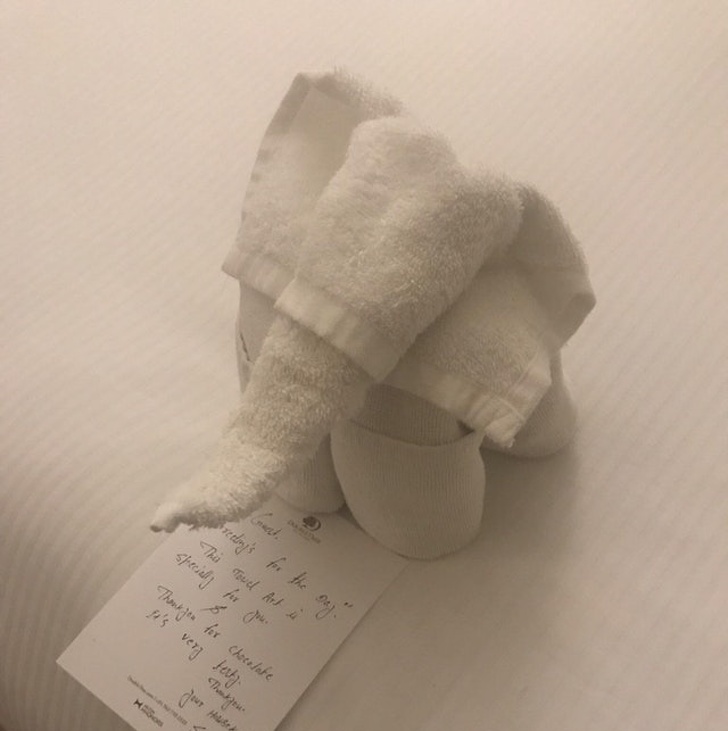 ▼「我在飯店留了一些巧克力給房務清潔人員,這是他們的回禮。」