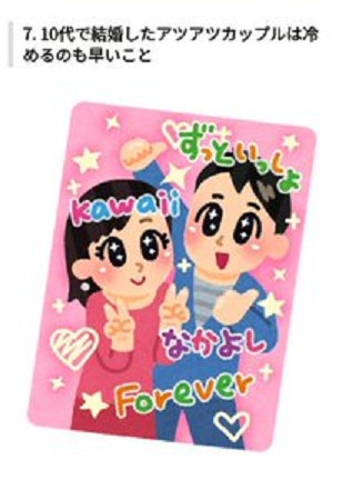 ▼7)十幾歲就結婚的情侶,感情會快就會變淡了。