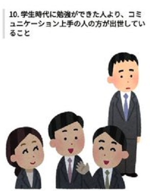 ▼10)擅長社交手段的人,比起成績好的人更容易成功。