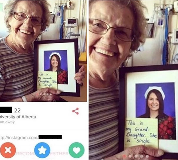 ▼交友軟體看到這樣的照片:「這是我孫女,她目前單身喔!」
