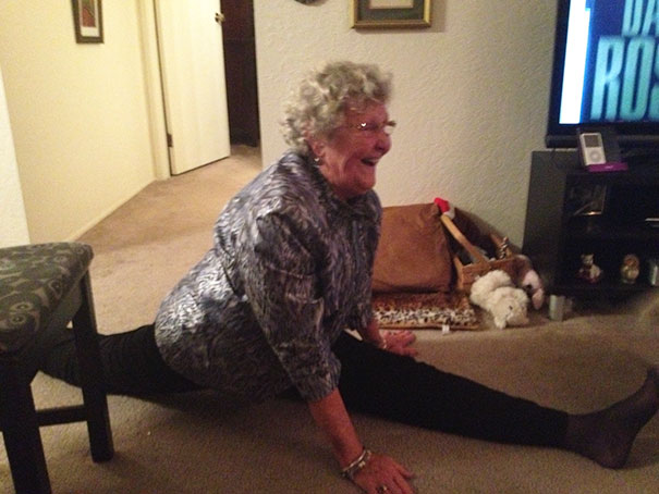 ▼慶祝完80大壽之後,阿嬤表演劈腿了!