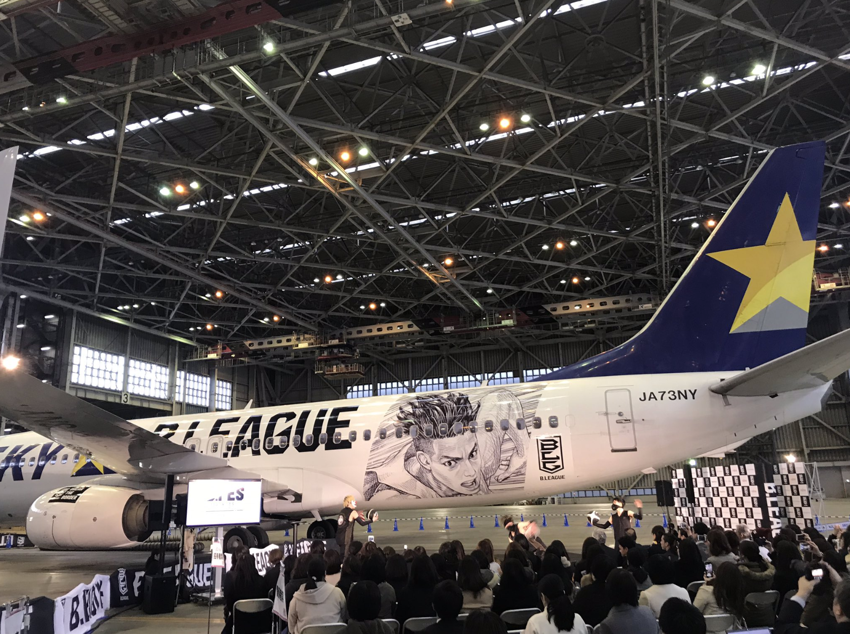 井上雄彦さんイラストのスカイマーク特別塗装機、「B.LEAGUE JET」が初めて公開されました!#Bリーグ #バスケ #Bフェス pic.twitter.com/X19mQWGVJy