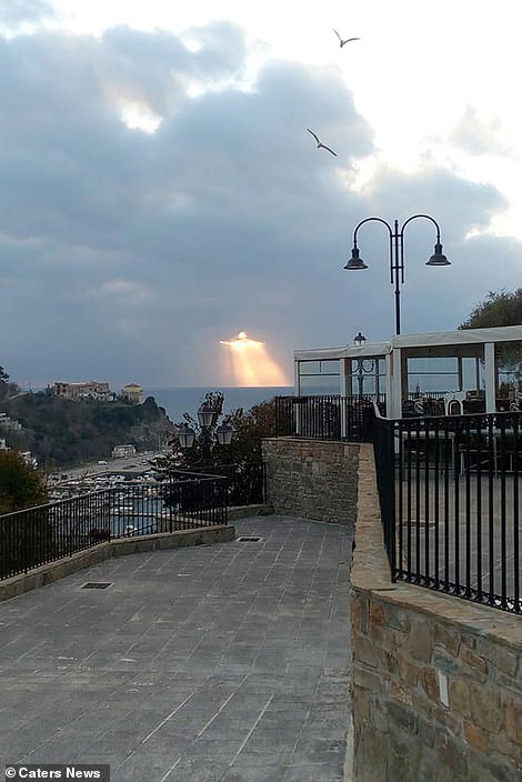 2019年03月07日義大利的上空雲層籠罩,平靜的小鎮Agropoli迎來傍晚。Alfredo Lo Brutto是生活在小鎮上的一名居民,當他看到天邊的陽光穿過雲層所展現的那一幕,瞬間被震驚。