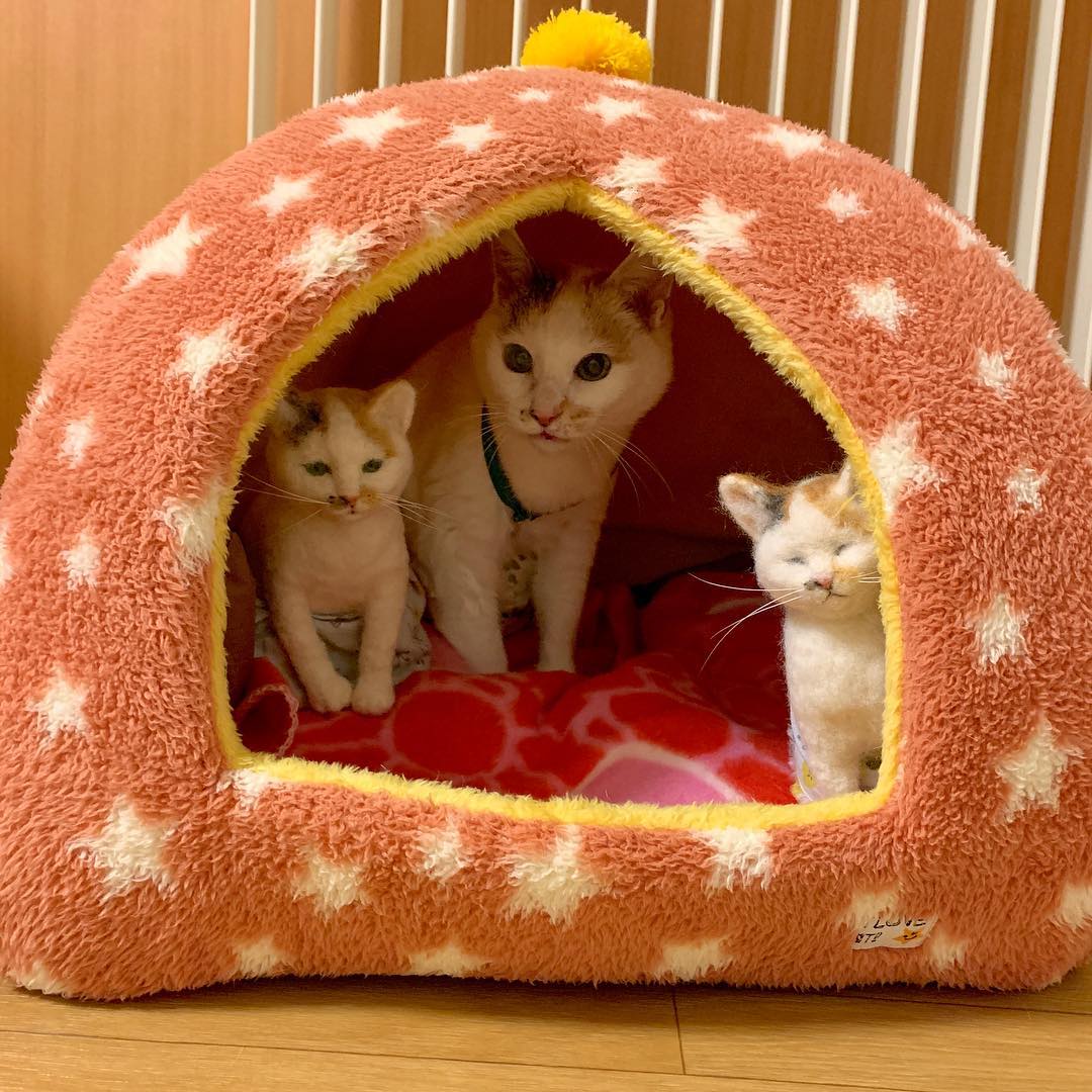 ▼Maru和2個朋友待在一起,是不是很像貓媽媽帶小孩?而且兩個「小孩」完全是「貓媽媽」的翻版~