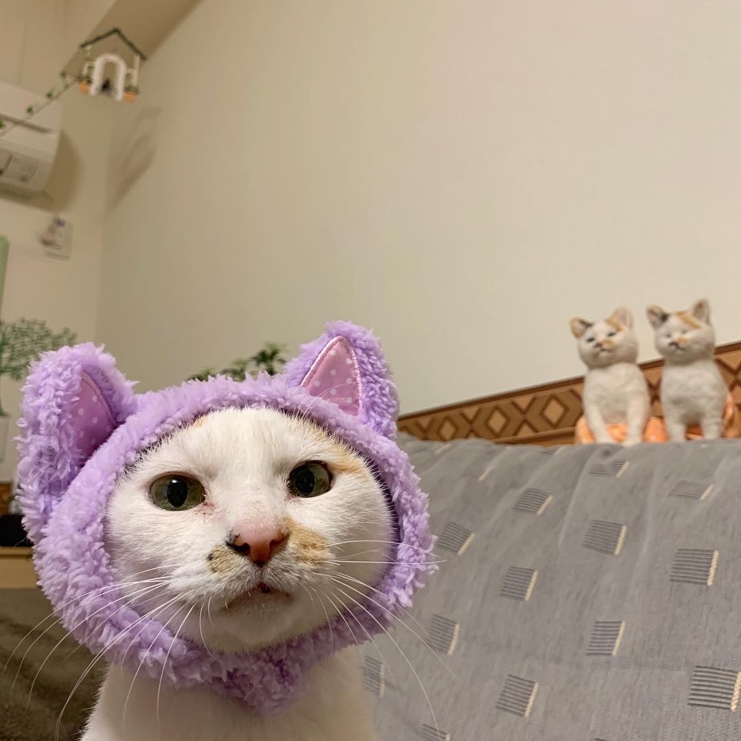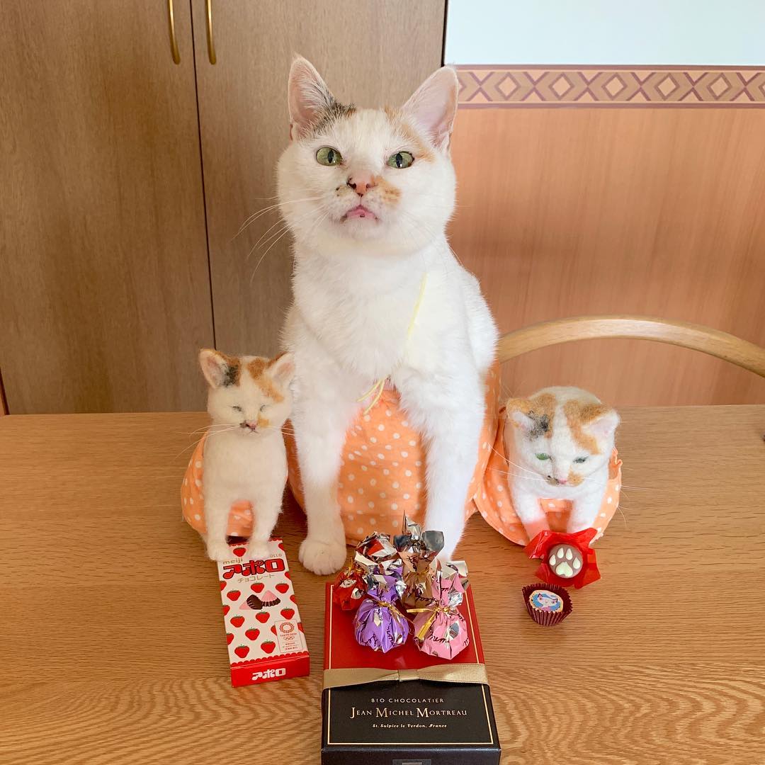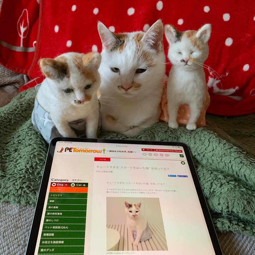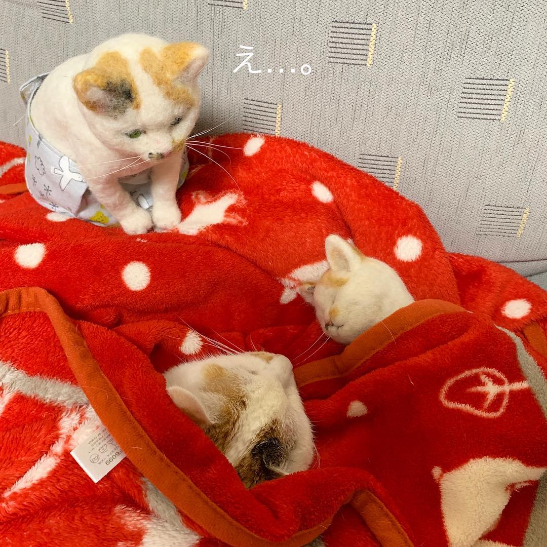 ▼其實那兩隻小貓咪是用羊毛氈做的。主人很愛Maru,又有一雙巧手,就以牠為範本,做了一隻和牠一模一樣的羊毛氈玩偶。