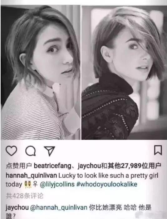 ▼昆凌的每條IG,身為頭號粉絲的周杰倫都是第一個評論讚美的。有一次昆凌曬出自己撞臉好萊塢女神Lily Collins的照片,周杰倫留言說:「你比她漂亮,她是誰?」