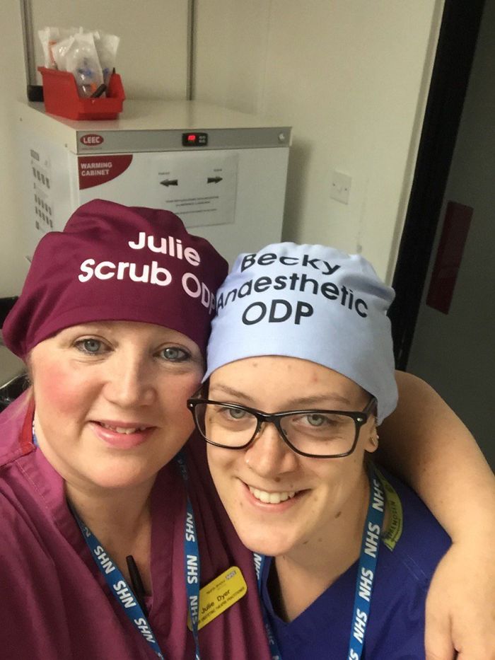 ▼有了寫上名字和職務的手術帽,醫生可以一秒知道每個人負責的事物,加上清楚知道對方的名字,溝通協調起來也更加方便,還能夠增加同事之間的友誼。