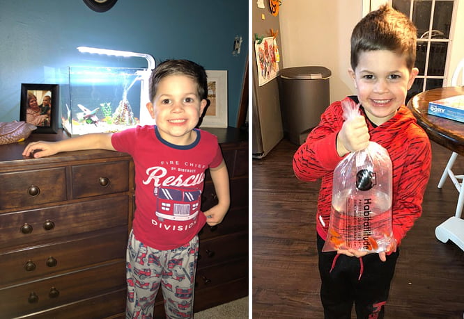 ▼Everett失去了心愛的金魚,看著空蕩蕩的魚缸很難過。Tori和丈夫為了安慰兒子,帶他去買了新的金魚。Everett從Nemo的事上得到教訓,保證再也不會將金魚從水中拿出來了。