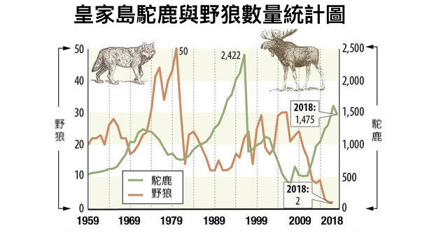 ▼位於密西根州的皇家島因為氣候變遷,過去供狼群來往皇家島與主島間的冰橋融化,導致皇家島內的野狼僅餘個位數。