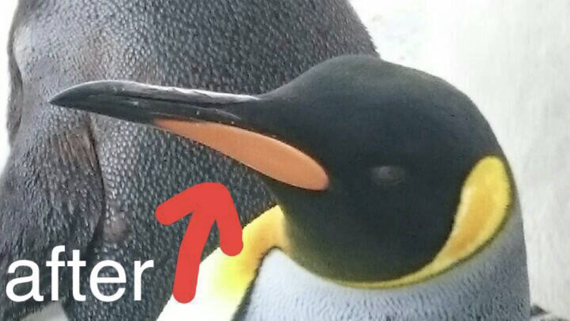 ▼日本北海道旭山動物園在官方推特分享:「國王企鵝嘴喙橘色的部分,一年會剝落一次,顏色會變得更鮮艷。」(☉д⊙)什麼?那個東西竟然會「剝落」嗎?!