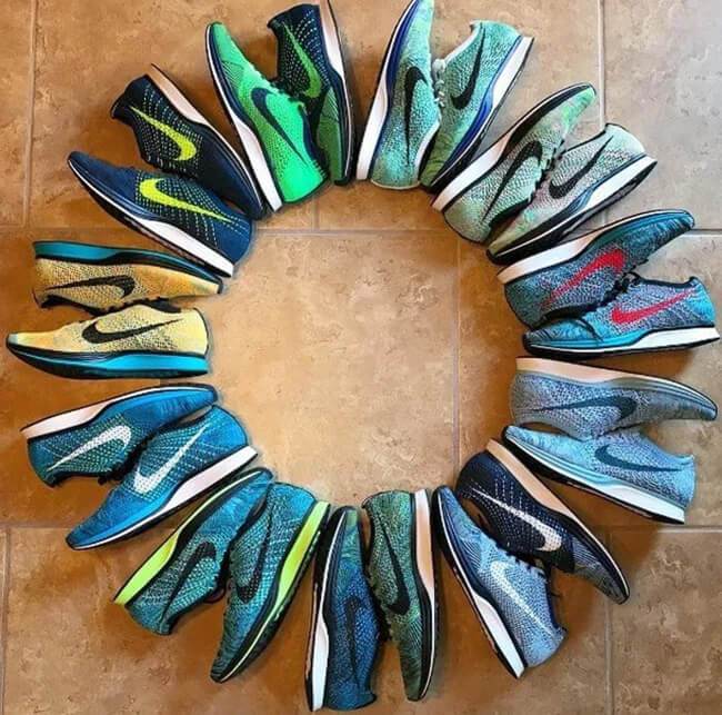▼整理排列成藝術品般的運動鞋。
