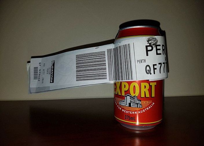 ▼是的,這不是幻覺,你/妳沒有看錯!一瓶孤獨的罐裝啤酒,就這樣形單影隻地,出現在機場的行李傳送帶上。一位來自澳洲、名叫迪恩‧斯汀森(Dean Stinson)的旅客,在搭乘澳洲航空《Qantas》的國內線QF777次航班,準備由墨爾本飛前珀斯時,在櫃台託運了他唯一的行李:一罐西澳的Emu Export啤酒。