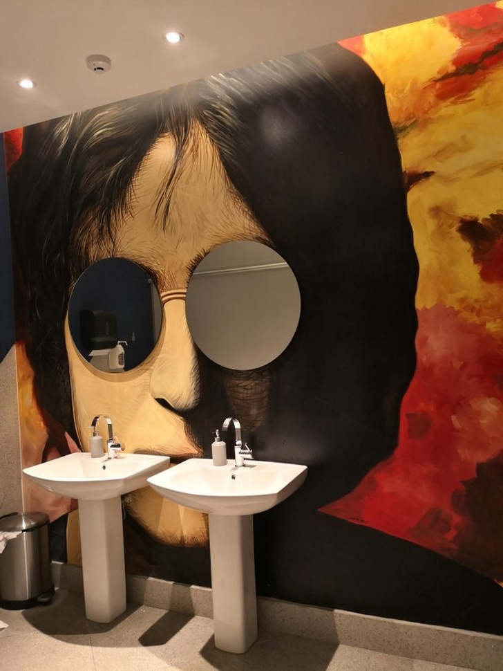 ▼20.牆面的墨鏡正好是洗手台的鏡子,超巧妙的設計。