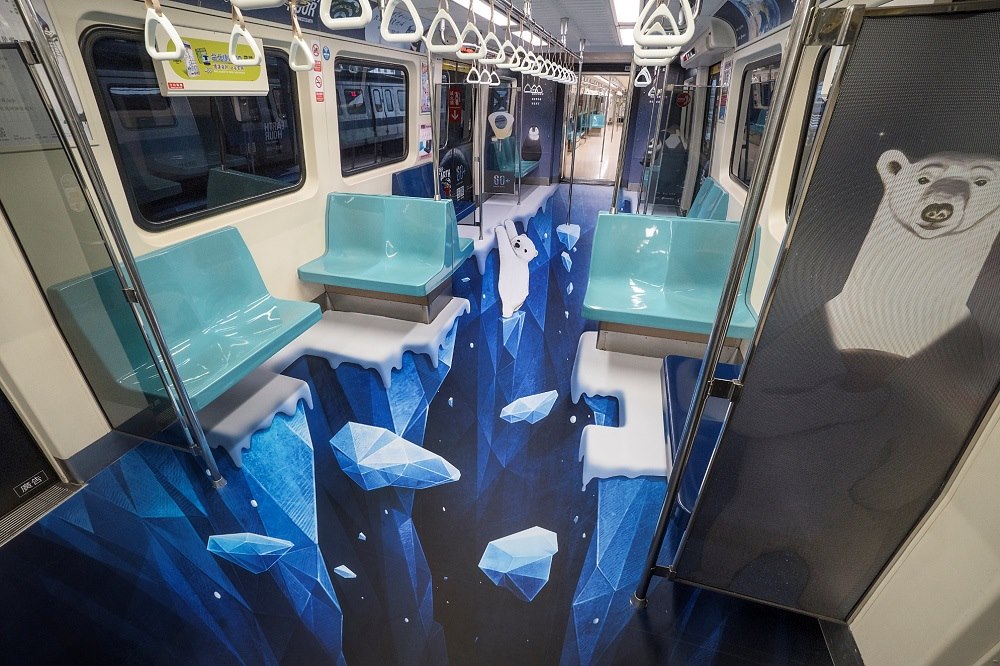 捷運車廂用彩繪訴說愛地球! 北極熊寶寶「姿勢好揪心」:再忽略就遲了